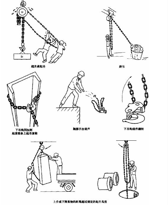 二、斜吊。如果我們在使用手拉葫蘆時斜吊貨物,在起吊過程中貨物會危害我們的人身安全。