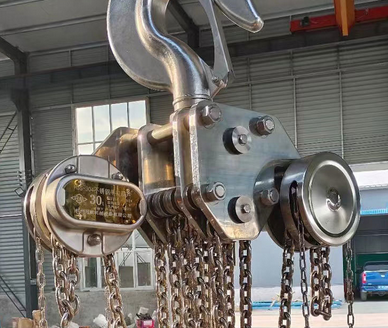 隧道里長期無陽光照射,空氣溫度相對較低,造成隧道內陰冷潮濕。隧道挖掘過程中普通的機械設備無法長期使用,施工單位投入使用不銹鋼手拉葫蘆、不銹鋼電動葫蘆、不銹鋼單軌小車等工具進行重物搬運、設備起吊安裝等工作。